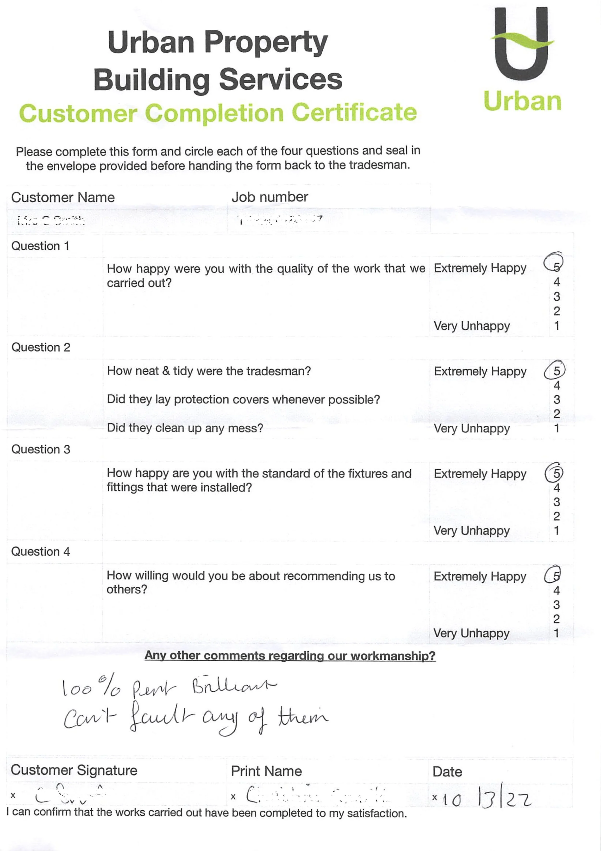 At the end of each project we ask the client to complete a 'Completion Certificate" here are a few from over the years.....